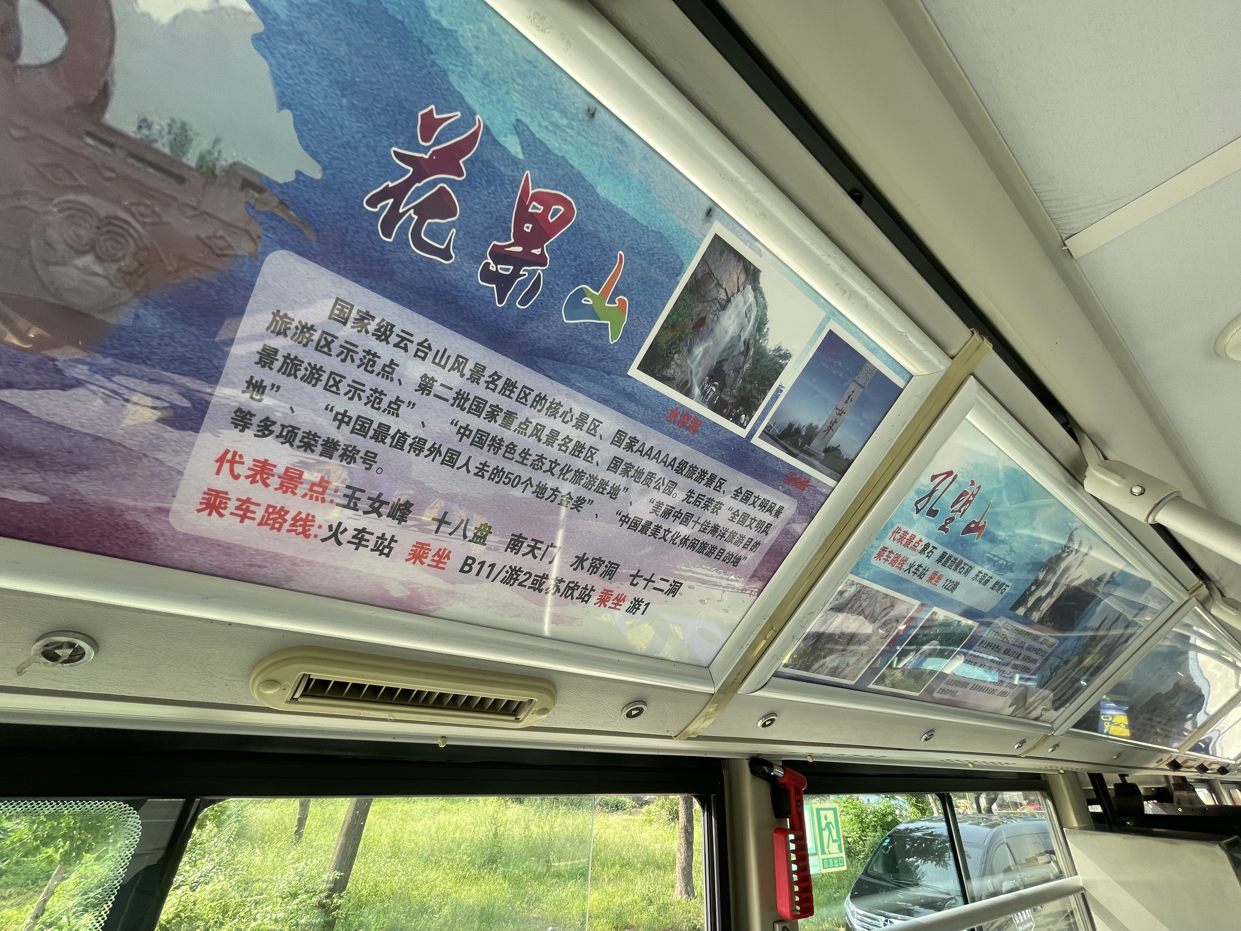 公交游1路走向為西門公交站至花果山風景區,線路全程52公里,途徑47個站點,串聯起西城區與東城區所涉及的石棚山風景區、孔望山風景區、花果山風景區的港城特色旅游景點。主題車廂是乘客了解連云港旅游景點的一個重要窗口,車廂內看板分別展示了各大旅游風景區的情況簡介及公交轉乘線路走向,這不僅方便來連乘客第一時間掌握出行走向,也大幅度提升了游玩幸福感。同時,主題車廂還以“與雷鋒車同行”為導向,在車廂內為乘客提供了雨傘、旅游導向圖等便民設施。