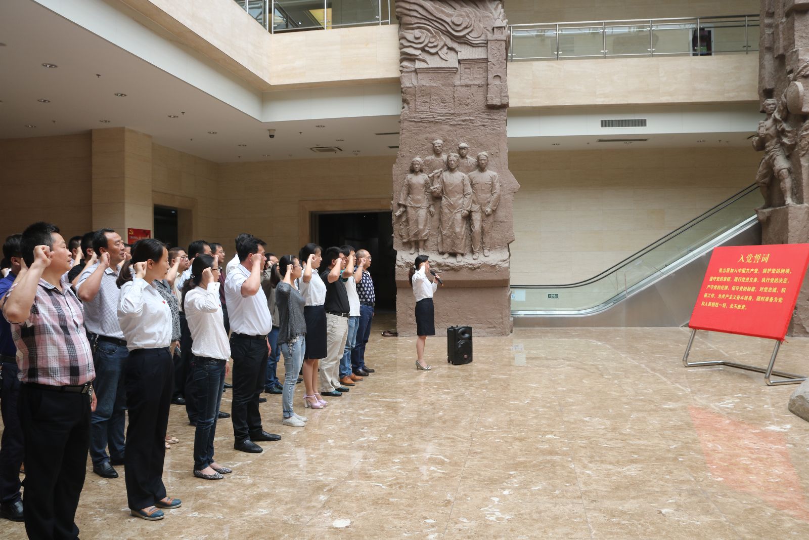 為紀念中國共產黨成立95周年,海通公交公司黨委結合“兩學一做”學習教育活動的開展,6月15日下午2:00,公司領導班子成員、中層干部和機關部室黨員一行80余人,參觀了連云港歷史革命紀念館,緬懷革命先輩,接受革命傳統教育和愛國主義教育。新老黨員站在黨旗前,重溫入黨誓詞,通過宣誓堅定黨員的理想信念。