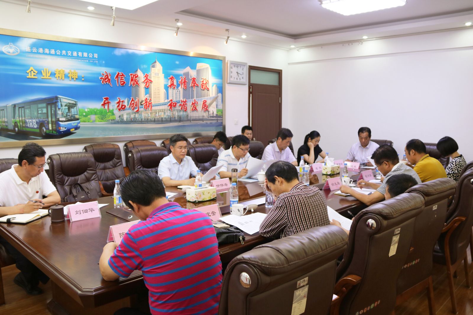 8月2日,市人大常委會副主任徐大勇、副秘書長徐善明、人大常委環資城建委程洪喜主任、人大代表張宜奎等一行到海通公交公司進行專題調研,交通控股集團黨委書記、董事長劉永能,總經理仲偉濤,副總經理陳修習、紀委書記趙煦、海通公交總經理劉佃華、黨委副書記徐俊生參加調研。