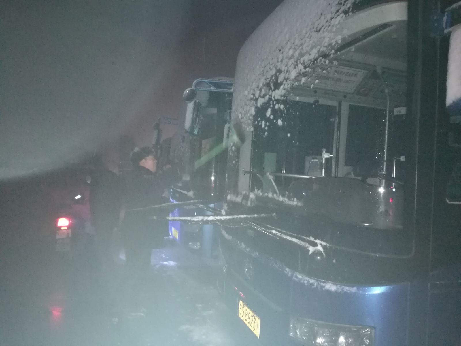 12月11日凌晨5點,全體管理人員提前到崗,各司其職保障公交車輛安全平穩運營,各分公司安全員在首班發車前先對線路危險路段,坡道、涵洞、轉彎、易積雪打滑路段進行現場勘查,做到先查看再發車。各分公司經理帶領工作人員在華威、江化北路等停車場站,對當天上線運營車輛進行提前預熱,開啟暖風,清理擋風玻璃及后視鏡上的積雪,并對車輛轉向,制動等性能進行檢查,確保每一臺車輛安全性能良好。公司經理朱華麗帶領領導班子成員對駕駛員進行面對面安全交待,提醒駕駛員行車中注意控制車速,留有橫向縱向安全距離,謹慎駕駛,安全行車的同時要多提醒乘客上下車慢上慢下,防止打滑、摔倒等事情發生。