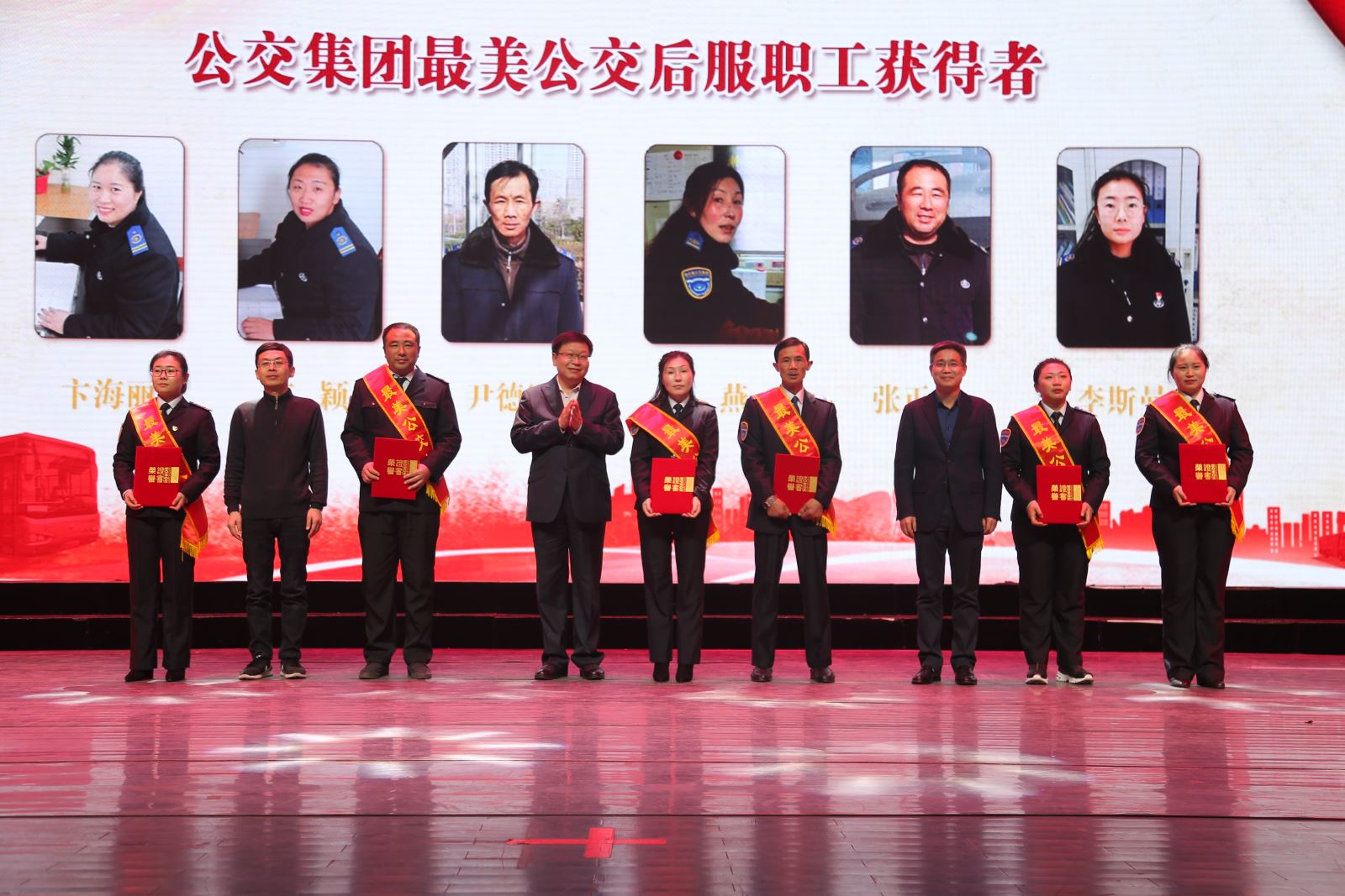 市交通控股集團董事長、黨委書記劉永能,市交通控股集團總經理、黨委副書記仲偉濤,市交通控股集團監事會主席孫桂偉,市交通控股集團工會主席王中永分別為公交集團24名“最美公交人”和6名“最美賢內助”頒獎,感謝他們多年來在公交行業的所做的突出貢獻以及對公交工作的大力支持,在他們愛崗敬業、團結奮進的工作氛圍影響下,有越來越多的公交職工和家屬加入到傳播正能量的職工隊伍中來,為公交集團高質發展、后發先至奠定了扎實基礎。