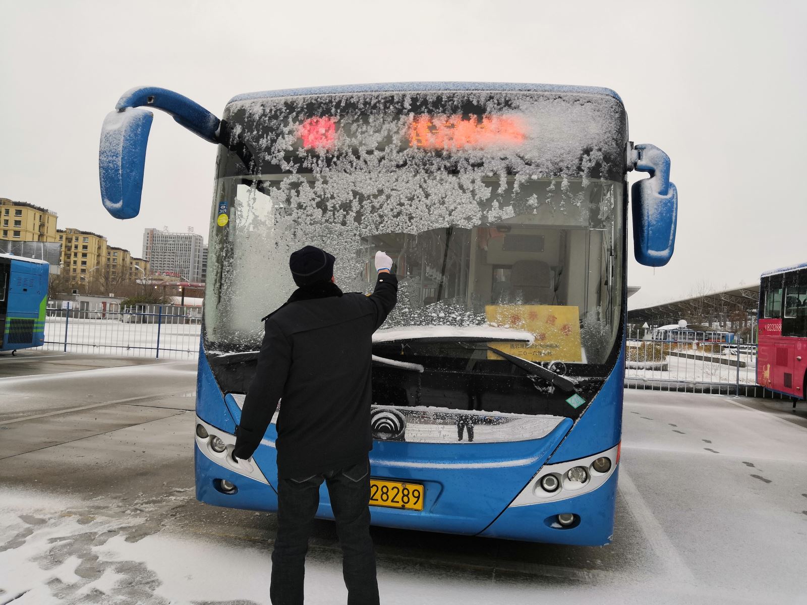 31日凌晨4點左右,公交集團各事業部領導班子、安管人員嚴格按照惡劣天氣應急預案和突發事件處置流程的要求奔赴各路段,檢查路面、橋段、涵洞積雪結冰情況,第一時間將道路狀況以電話、視頻、照片的形式反饋至各調度室和駕駛員,方便調整行車走向;全體駕駛員、站務員提前到崗,清理車輛、站臺、場站內的積雪,給車輛預熱,做好發車前準備工作;各場站相關負責人面對面做好駕駛員安全交代,叮囑駕駛員低速慢行、保持安全車距;運營人員在公交客流密集站、首末站,指揮疏導車輛,協助維持秩序,加強安全行車現場管理,確保不出現積壓客流的情況。