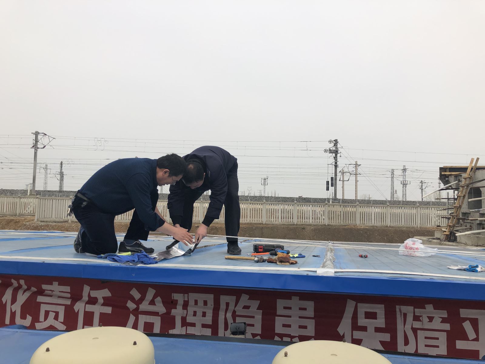 近日,江化北路停車場駕駛員飲水間房頂出現漏雨現象,導致無法正常飲水和午餐。公交集團公交事業一部分公司結合實際需求,利用現有資源臨時搭建了一個簡易飲水間,內部配置了一臺微波爐、冰箱和茶水桶,方便駕駛員跑班休息間隙使用。隨后,公交事業一部分公司買來防水材料,帶領管理人員爬上房頂,對漏雨的屋頂進行防漏施工補救。