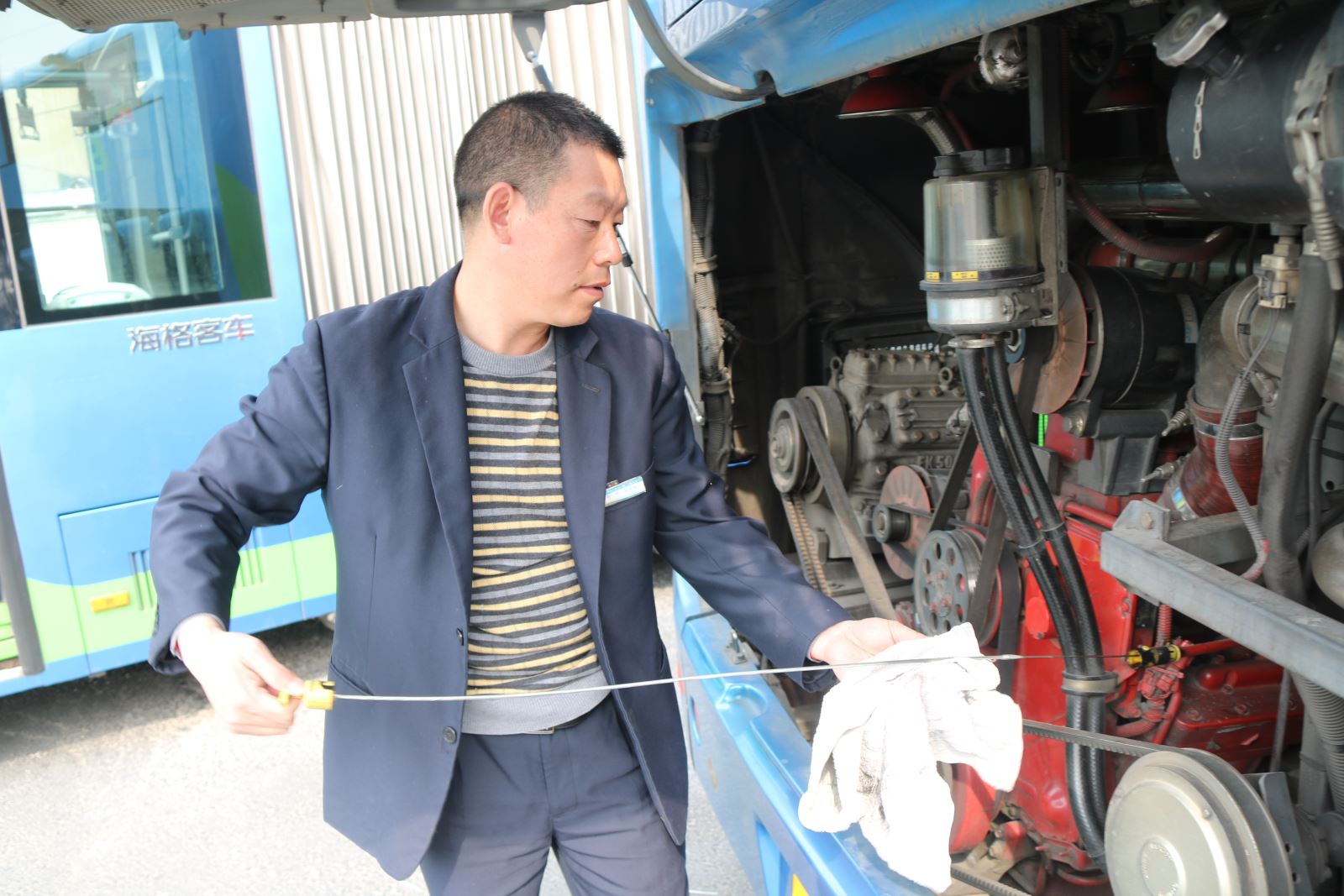 陶波,2006年從事公交行業(yè),現(xiàn)為公交集團(tuán)快速公交事業(yè)部B1K線駕駛員。在這十三年的公交駕駛生涯中,他以熱情飽滿的文明服務(wù),干凈整潔的車廂環(huán)境,安全舒適的乘車感受,倍受乘客贊譽(yù)。在B1K線駕駛員陶波的車上,除了能見到掃帚、水桶、拖把等日常清潔工具,還多了木刷、清潔海綿、舊報(bào)紙和鐵鉤等。他每天回場(chǎng)后總是用木刷蘸著肥皂水一遍一遍地清洗著車廂地板,將粘在地板上的口香糖等污漬清除。清潔海綿和舊報(bào)紙是用來擦拭車窗玻璃和清理乘客嘔吐物,鐵鉤是用來勾出夾在縫隙里的垃圾……用這些工具對(duì)車輛進(jìn)行一次徹底的清潔。每一次車輛到站,陶波從來都不閑著,總是將車內(nèi)和車外衛(wèi)生打掃干凈,打掃的非常細(xì)心,是駕駛員們心中公認(rèn)的“愛車人士”。2014年、2015年、2016年連續(xù)三年被海通公交公司評(píng)為十佳“愛車標(biāo)兵”及“愛車先進(jìn)”榮譽(yù)稱號(hào),在“為身邊的文明公交車點(diǎn)贊”活動(dòng)中被評(píng)為“十佳明星”,2016年榮獲“連云港市五一勞動(dòng)獎(jiǎng)?wù)?rdquo;榮譽(yù)稱號(hào)。