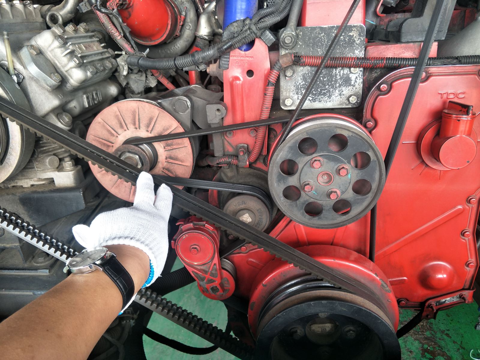 經常檢查水泵工作情況和風扇皮帶張緊力,風扇皮帶不可沾油,防止風扇皮帶打滑。要密切注意水泵漏水情況,注意將百葉窗開足。