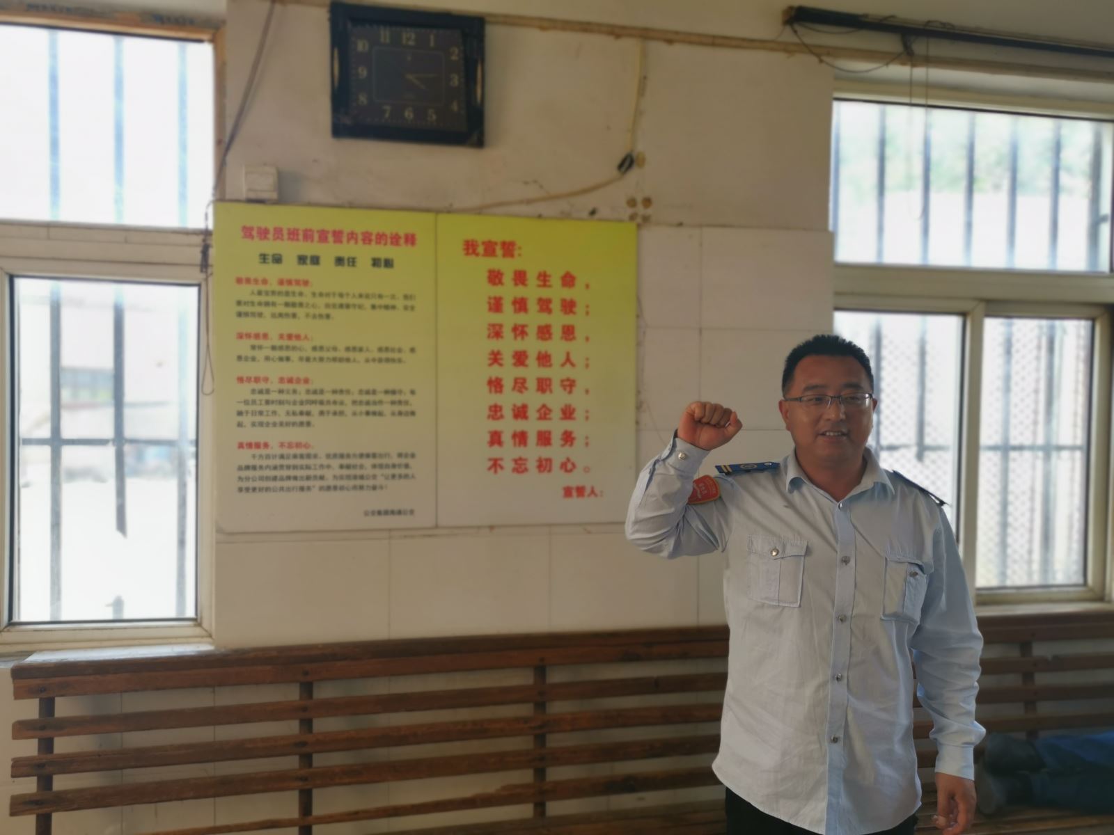 活動三:開展“駕駛員宣誓”活動。我宣誓:敬畏生命……忠誠企業……不忘初心,隨著駕駛員一聲聲鏗鏘有力的誓詞,安全這顆種子在心中深深的扎下了根。事業一部以強化全員參與感為著力點,將安全行車意識潤物細無聲的潛入到每一位駕駛員心中。
