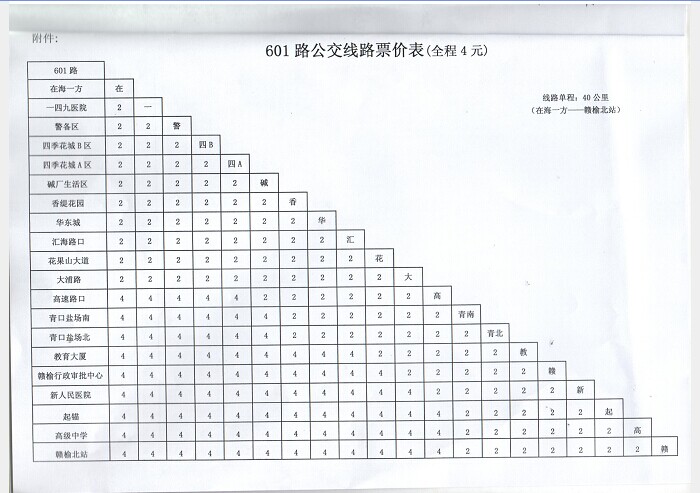 連云港市物價局對601路公交線路試行票價的批復